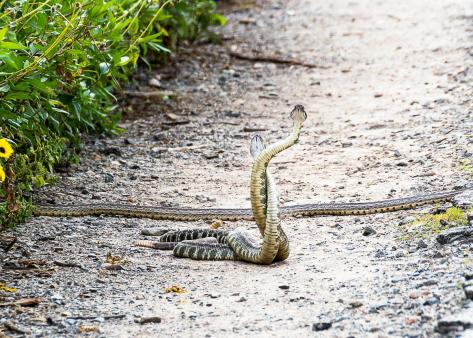 The two battling snakes continued for about 20 minutes, drawing the attention of about 20 other photographers who stopped to shoot.