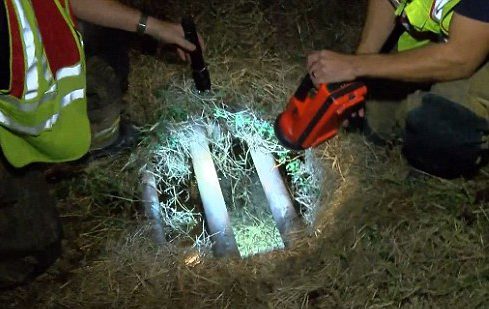 Rescuers arrived and scoured the area and zeroed in on a patch of hay in the median after hearing a sound.
