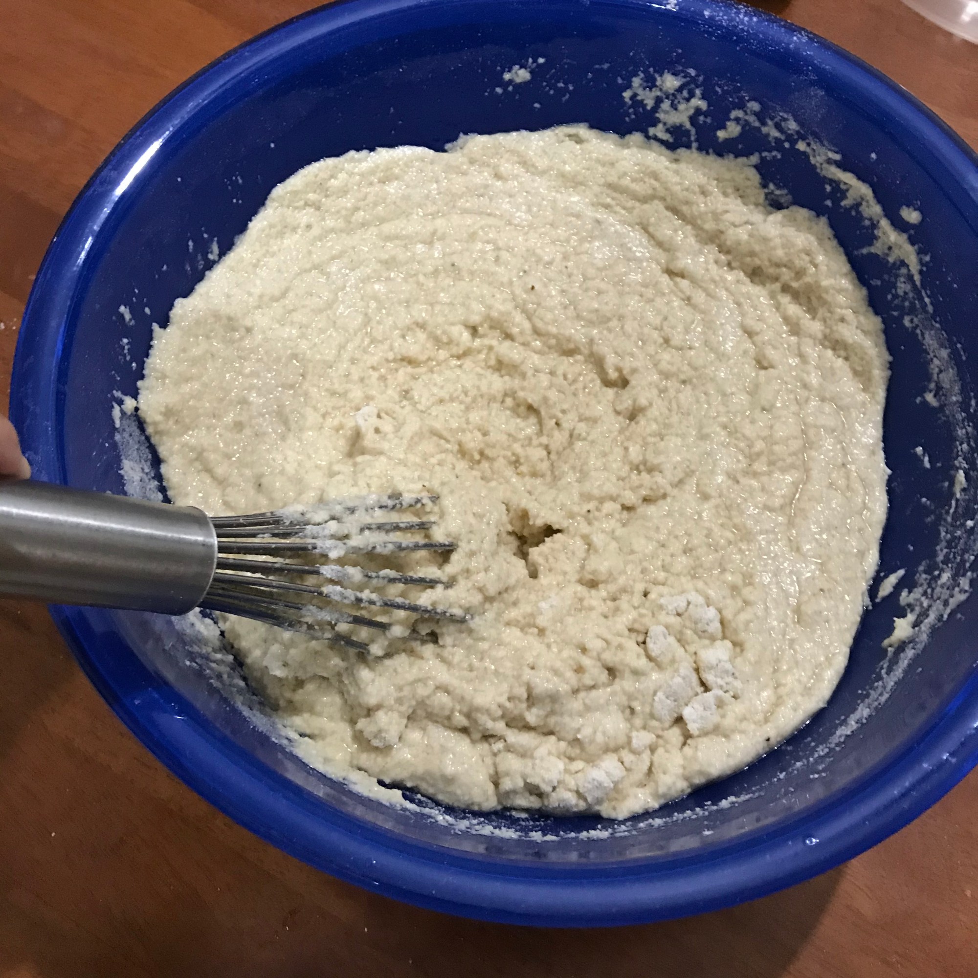 Mix your dry ingredients together (maseca flour, salt and banking powder) in a separate bowl and set to the side.