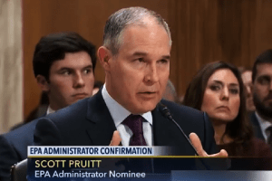 Oklahoma Attorney General Scott Pruitt testifying at a Jan. 18 confirmation hearing on his nomination as administrator of the U.S. Environmental Protection Agency.