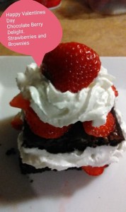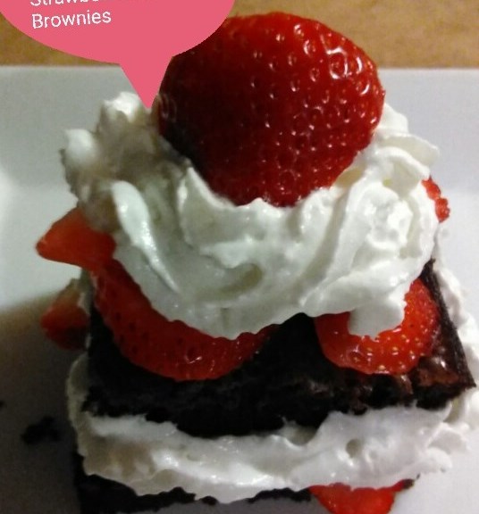 Place one brownie on the bottom and layer with sliced strawberries, whip cream on top, place another brownie on top and layer with strawberries and your whip cream. Go around the edge between the 2 layers of brownies with whip cream and place a full berry on top or you can slice them. If you want to dazzle it up a little, drizzle a bit of melted chocolate over the top of the entire dessert and plate. Simple easy dessert.